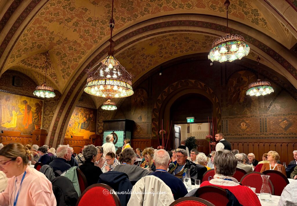 The walls of the basement rooms of Vienna’s town hall (Rathaus) are adorned with delicate patterns and frescoes of medieval images that date back to the late 17th century. Long used to host events, the tradition continues, and this unique underground space is often visited to provide a ‘coffee and cake break’ during tours. This Sachertorte cake was lighter than that at Hotel Sacher and featured a bit more jam.